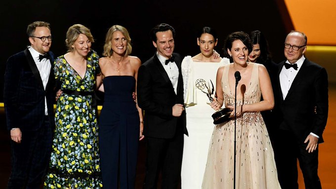 In Comedy, the big winner of the night was Amazon’s Fleabag, which added to its two Creative Arts wins Comedy Series, Comedy Directing, Comedy Writing and Lead Actress in a Comedy for show creator and star Phoebe Waller-Bridge. She stopped Veep’s Julia Louis-Dreyfus from setting a record of her own, most acting wins by any individual. But The Marvelous Mrs. Maisel, last year’s big comedy winner, still came away with the most wins for a comedy with 8 thanks to its six wins at the Creative Arts Emmys. It picked up the two supporting wins, for Alex Borstein (who repeated) and Tony Shalhoub. Veep closed out its final season going 0/9.