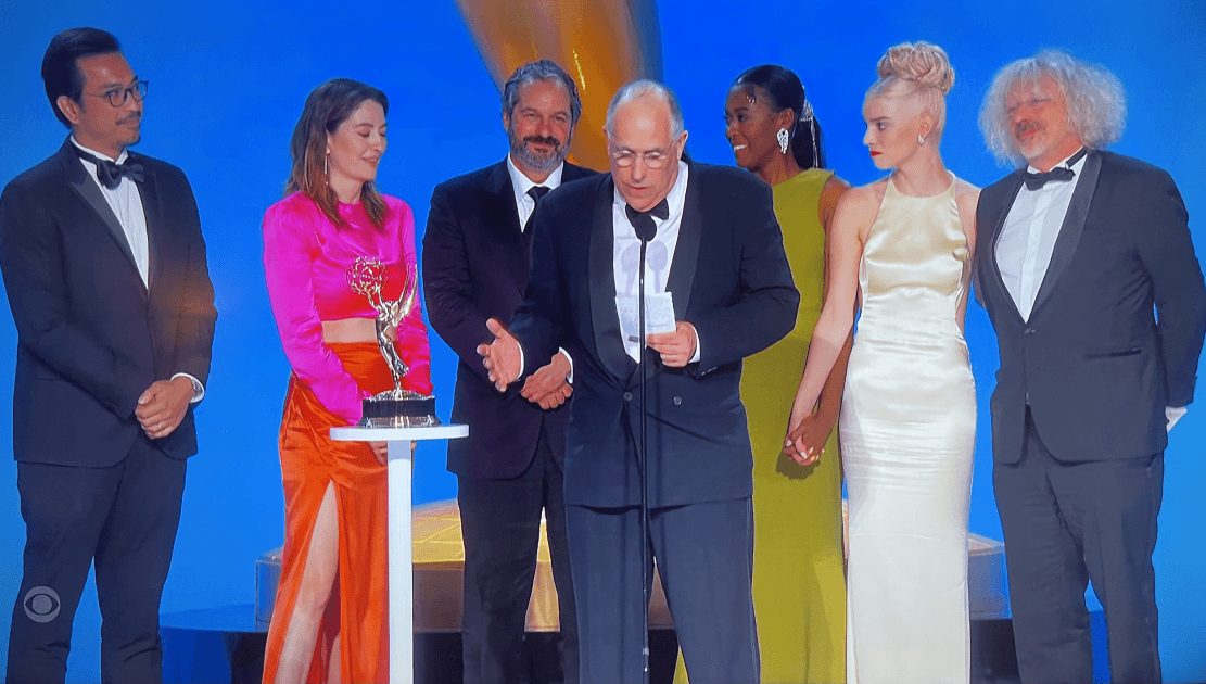 Ted Lasso (Apple TV+) and Hacks (HBO Max) took their freshman seasons and ran with 20 and 15 nominations apiece, and winning seven and three, respectively. Lasso took home Comedy Series, Lead Actor, Supporting Actor and Supporting Actress tonight while Hacks scooped up the writing and directing wins along with lead actress for Jean Hacks, who received the night’s biggest standing ovation.