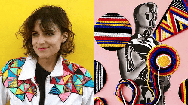 Born in Guadalajara, Mexico, Victoria Villasana is a textile artist interested in history, culture and how people relate to each other through their vulnerabilities in a fragmented and post-digital world. The dynamism in her work stems from the way the thread is left uncut, far below the frame, giving a surreal and unfinished aesthetic that reflects on the importance of acceptance of change, imperfection and the ephemerality of life. She currently resides in Mexico and England and continues to explore this medium through installations, social projects, editorial and commercial work and collaborations with artists, brands and galleries around the world.