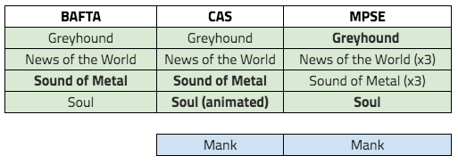FINAL 2021 Oscar Predictions: SOUND