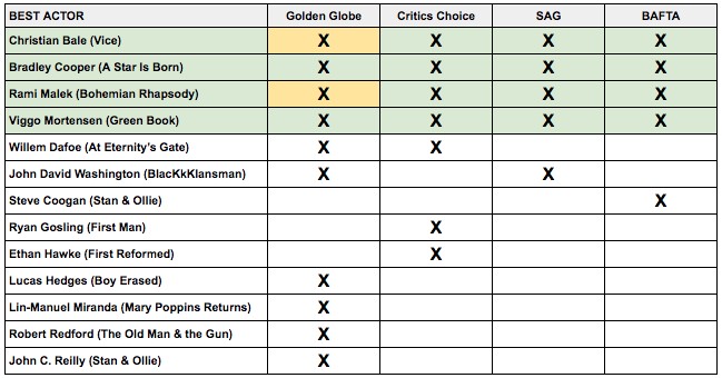 Golden Globe/Critics Choice/SAG/BAFTA – Who’s Got ‘Em