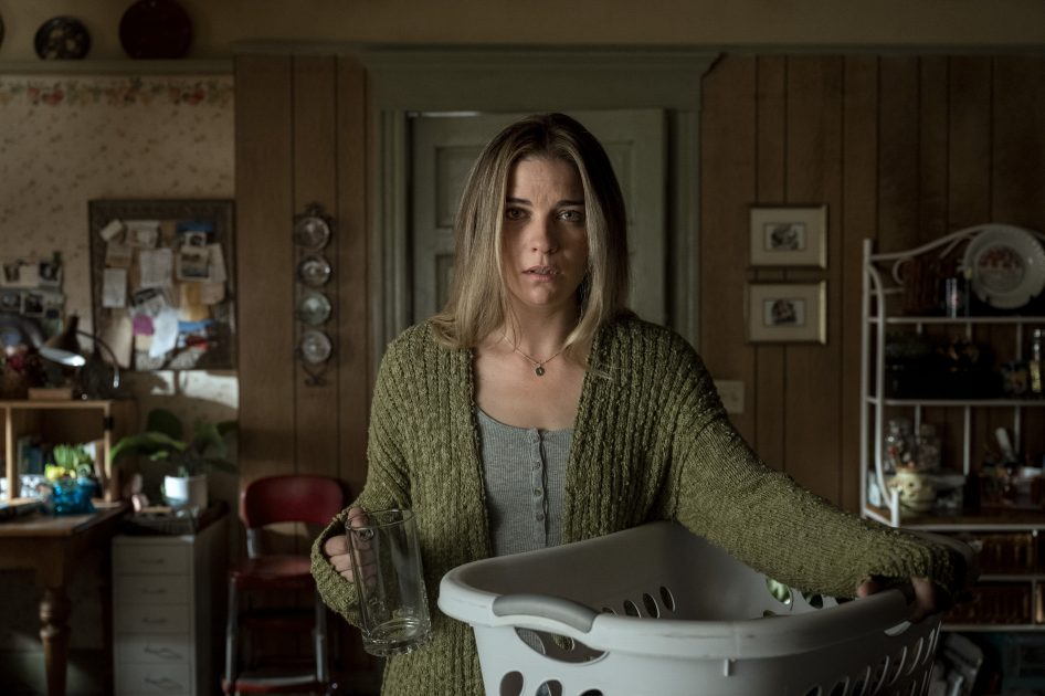 Emmy winner Annie Murphy (Schitt’s Creek) plays Allison, the wife in question. At home, she plays the role of a supportive wife to her husband Kevin (Eric Petersen). She fetches him a meal. She cleans up the kitchen. She laughs alongside him. And even though Kevin always treats her badly, Allison is always there by his side. The bright, colorful, and full of laughs multi-cam setup certainly thinks that Kevin and Allison are a happy couple, just like the one on your favorite family sitcom. But that’s not the truth. Allison is actually suffering on the inside. We see this in her face, and we see this even more clearly anytime the multi-cam setup shifts into a grimmer, lowly-saturated single-cam one whenever Allison leaves the house — a tonal change that the show pulls off almost effortlessly.