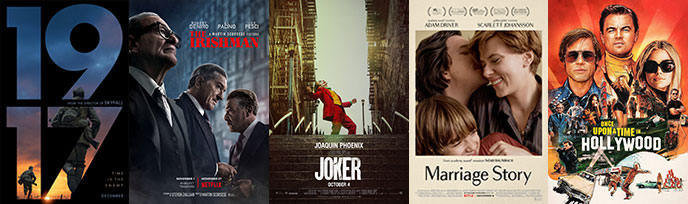 The Irishman and Once Upon a Time in Hollywood topped the San Diego Film Critics Society nominations with 10 apiece today. Marriage Story followed close with 8 and the trio of Dolemite Is My Name, Jojo Rabbit and Little Women earned six apiece.