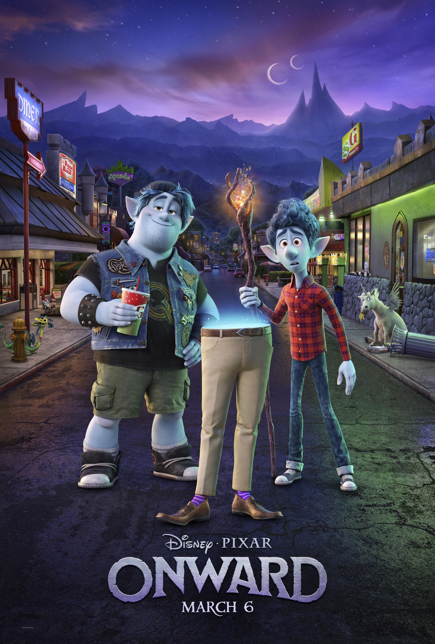 Disney and Pixar’s Onward, which hits theaters March 6, 2020, unveiled a new trailer, poster and images this morning. Set in a suburban fantasy world, Onward introduces two teenage elf brothers, Ian and Barley Lightfoot (voices of Tom Holland and Chris Pratt), who embark on an extraordinary quest to discover if there is still a little magic left out there. Also featuring the voice of Julia Louis-Dreyfus as Ian and Barley’s mom, Laurel Lightfoot, and Octavia Spencer as the voice of the Manticore, Pixar Animation Studios’ all-new original feature film is directed by Dan Scanlon and produced by Kori Rae—the team behind Monsters University.